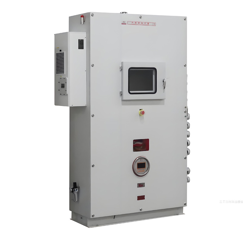在自动控制系统的控制下,防爆正压柜内充满保护气体。正压室内的压力高于正压室外的压力,形成小的正压安全环境,从而防止易燃气体和危险气体进入正压腔内。保证内部通用仪器和电气组件的安全运行。